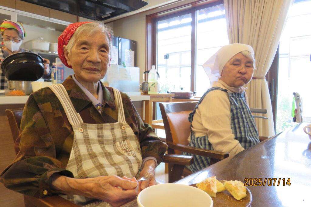美味しいおやつを食べようと、入居者様と一緒におやつづくりを行いました。