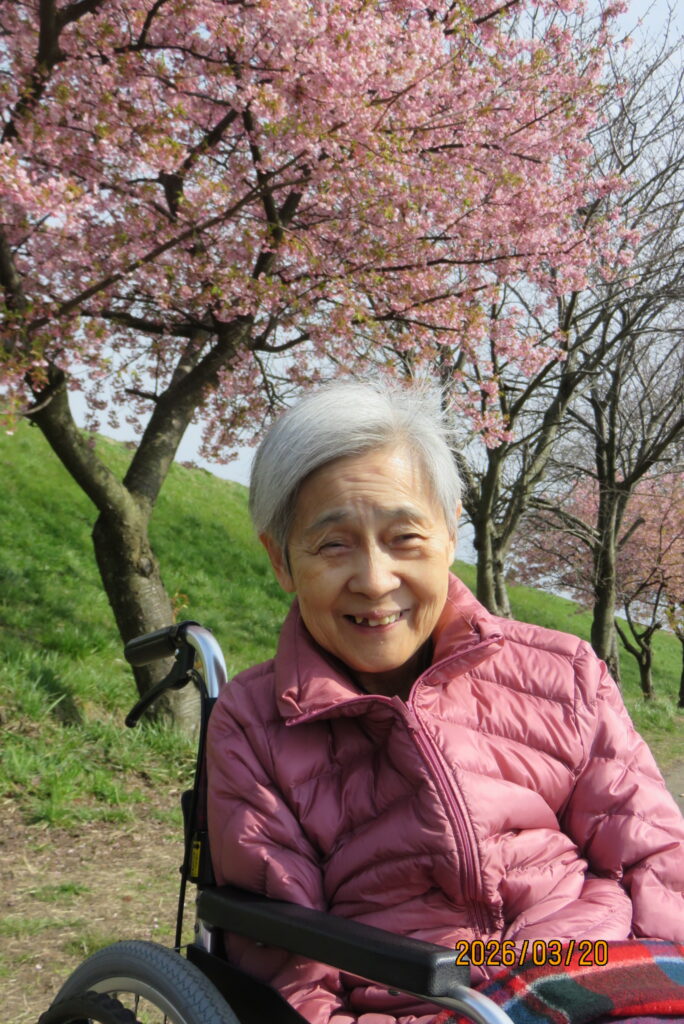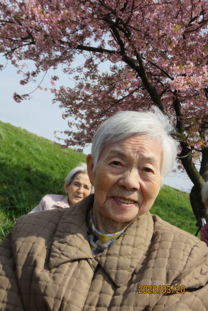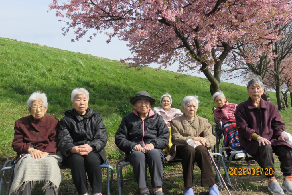 暖かかった春分の日の昼休み、ある職員から「コスモス広苑脇の堤防沿いに”桜”のような花が綺麗に咲いてるらしい」との話を聞き、早速、入居者様と出発\(^o^)/