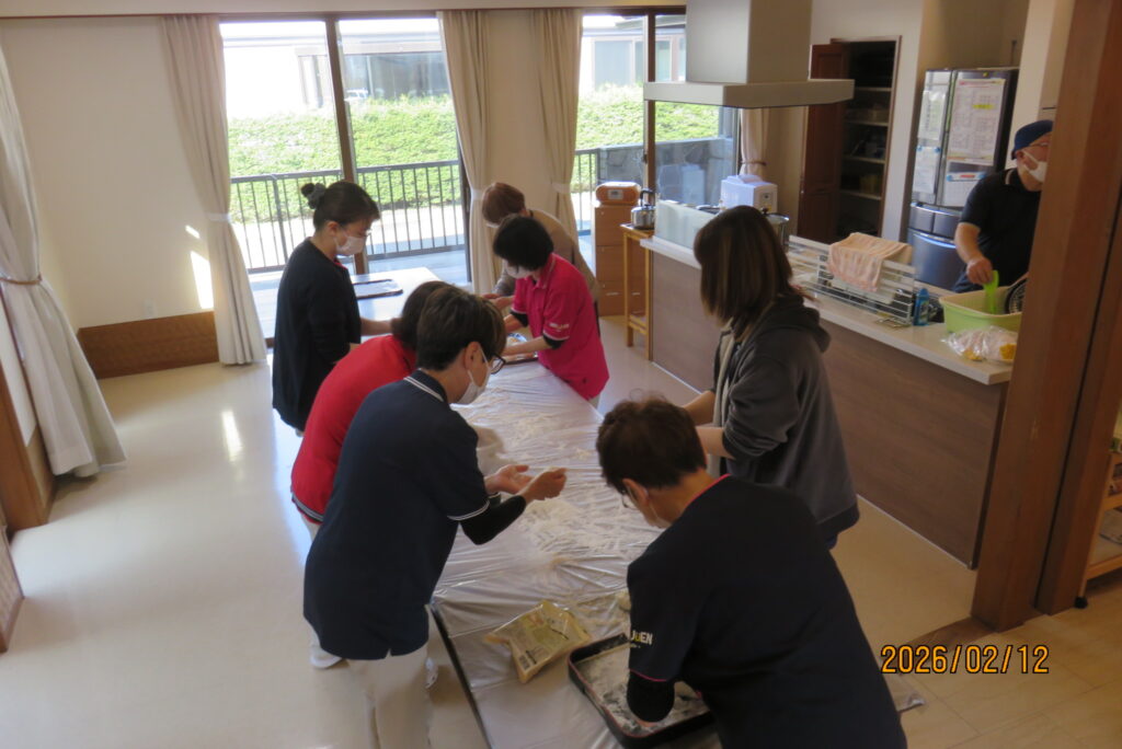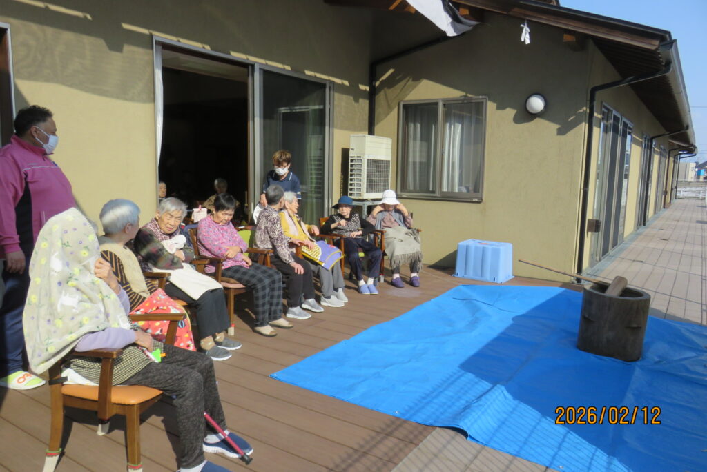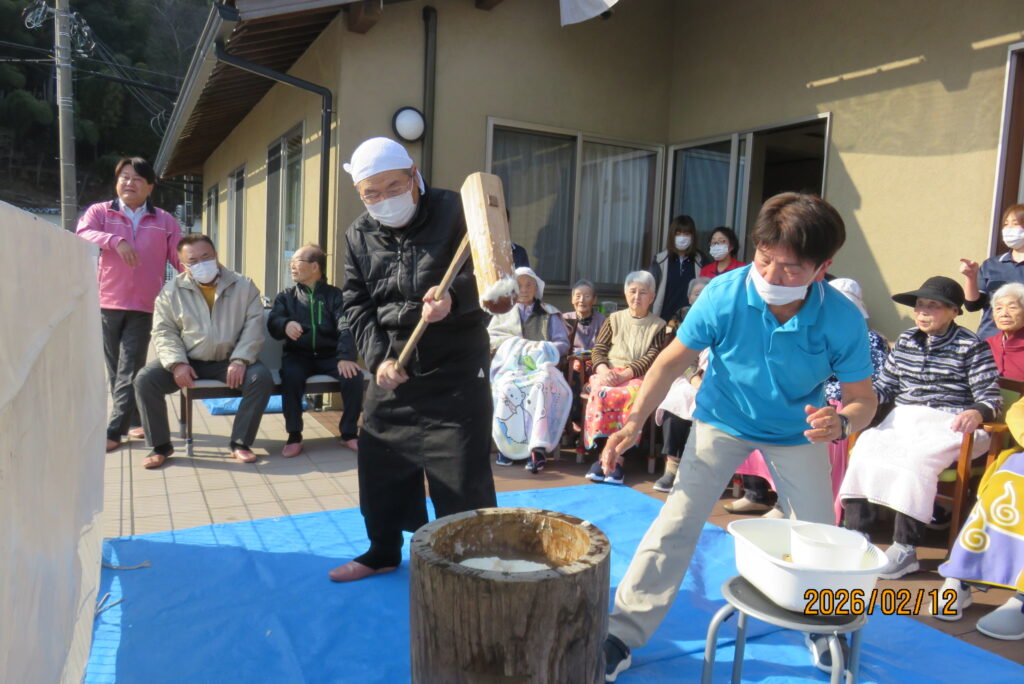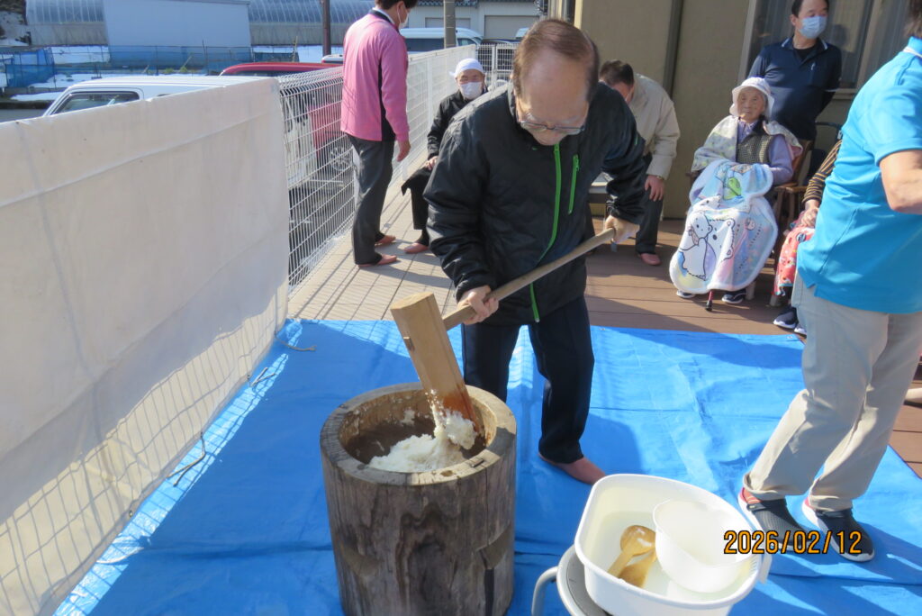 この日、グループホームでは運営推進委員の皆さんとともに「もちつき会」を開催しました。