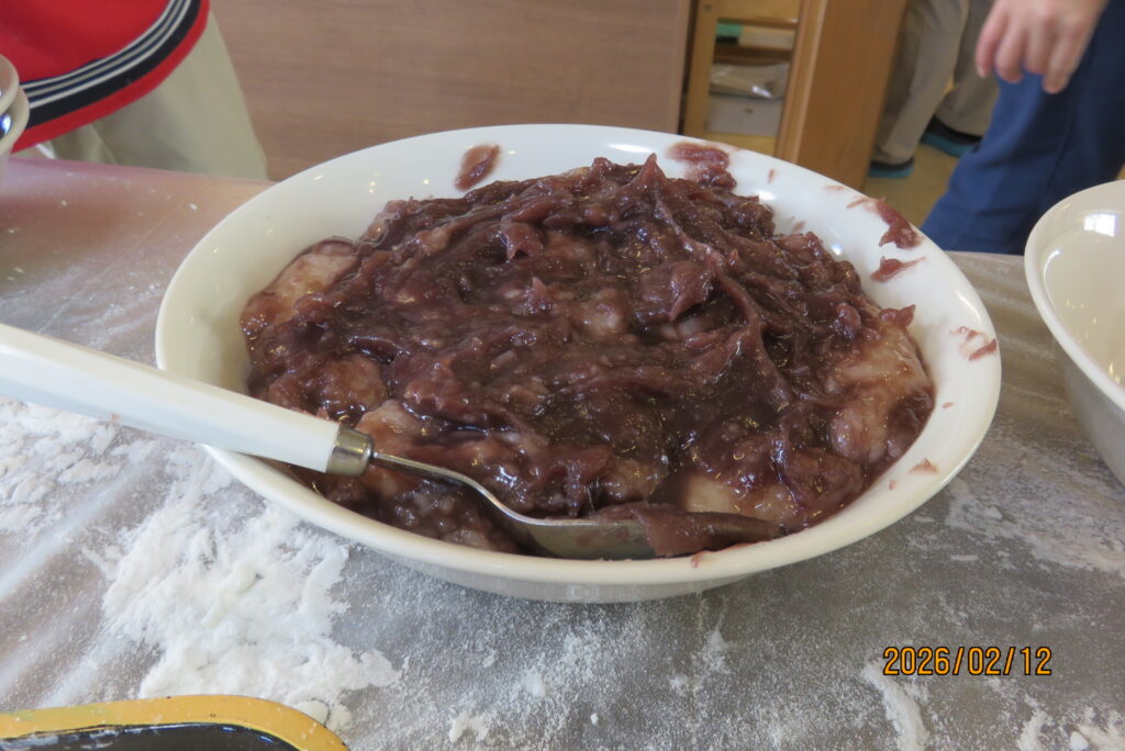 つきあがったお餅は、ぜんざいやきなこもちに。美味しそうですね🤤