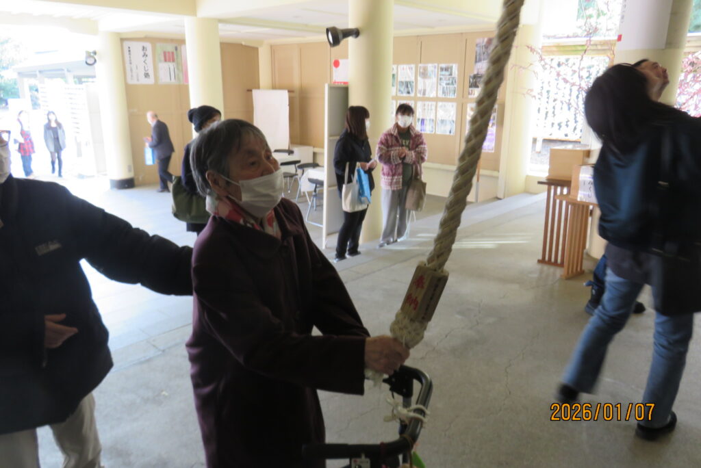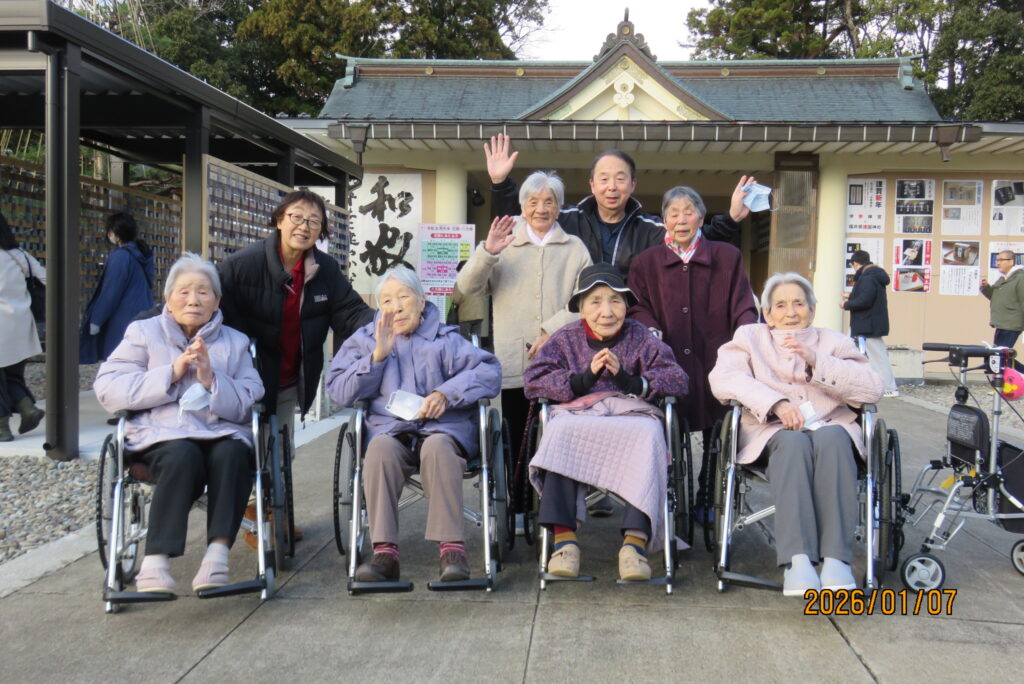 初詣 to 護国神社⛩ Part.2 2026/01/11 グループホーム 先日は、ほかの入居者様方が護国神社へ。 「思ったより空いてるねぇ」そんな事を話しながら、ゆっくりと参拝することができました。 参拝を終え、晴れやかの表情の皆さんと職員とで記念写真📸 今年も健やかに暮らせますように(●´ω`●)
