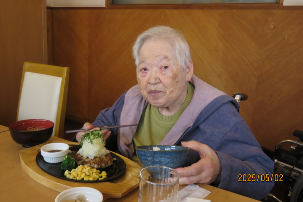 「おろしでサッパリしてるわぁ」 「美味しいわぁ」とぺろりと完食💛