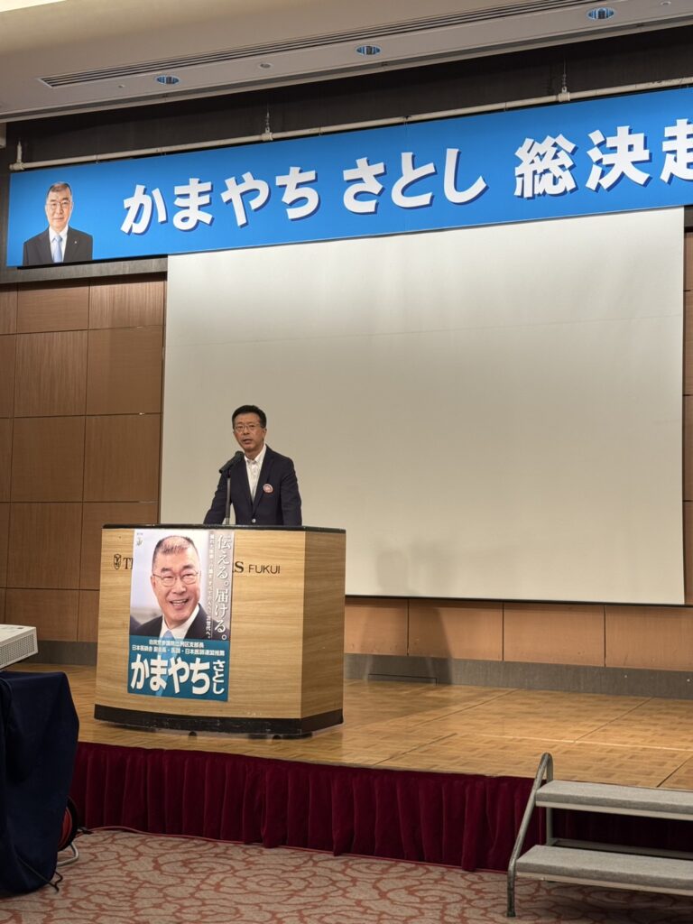 福井県老人福祉施設協議会 屋敷会長による応援演説