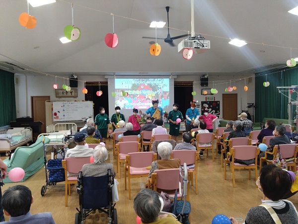 ご利用者様は、いつもと違う”職員”が進行するレクリエーションに笑顔が絶えないご様子でした。