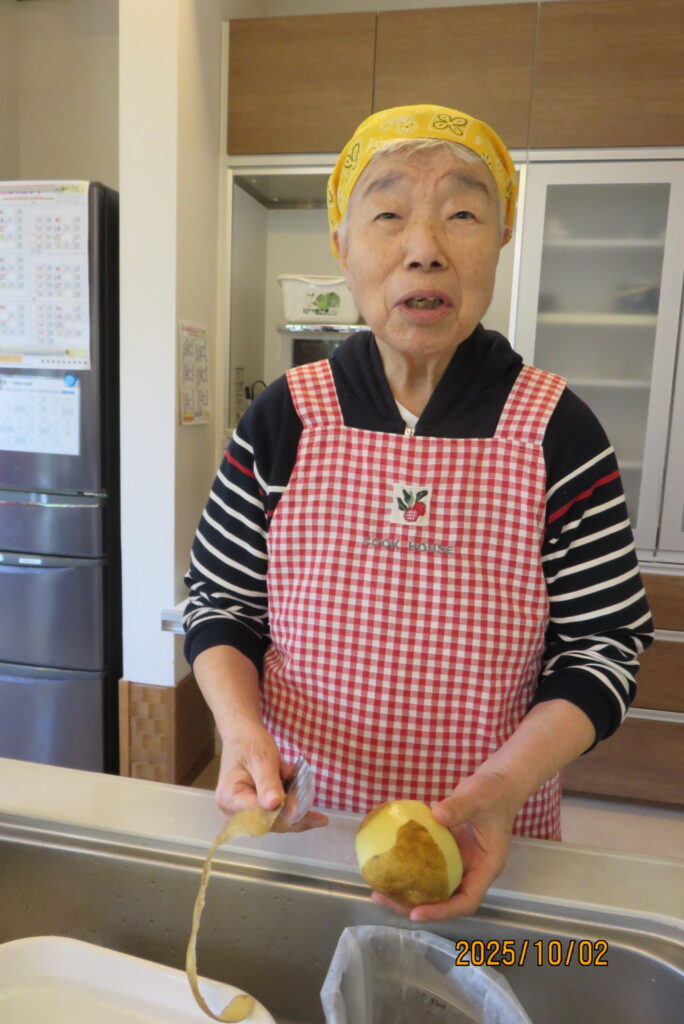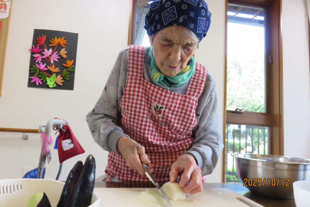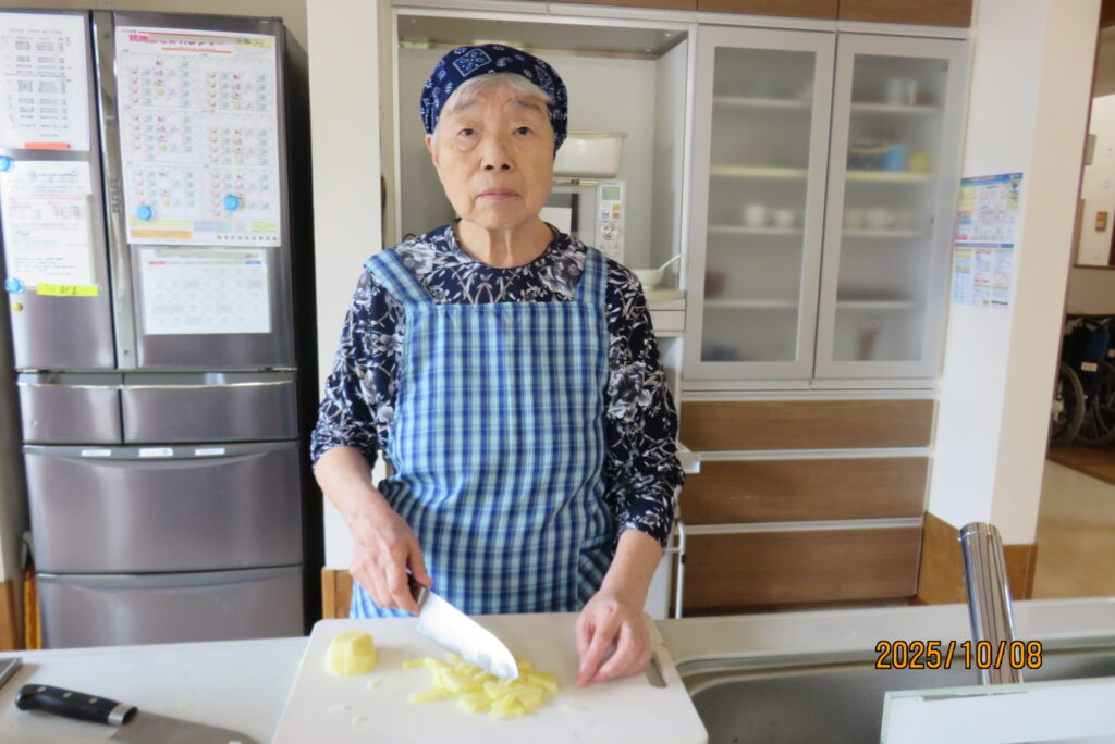 熟練の技 腕前に脱帽! 2025/10/21 グループホーム 調理に自信あり! 熟練ぞろいの宝珠の郷の入居者様方。 ある日の夕食づくりの様子をお届けします。 余裕の表情ですね(●´ω`●) いつも、皆様方の冴えわたる料理の腕前に驚かされっぱなしの職員たち。 これからもお手伝いをお願いします💛