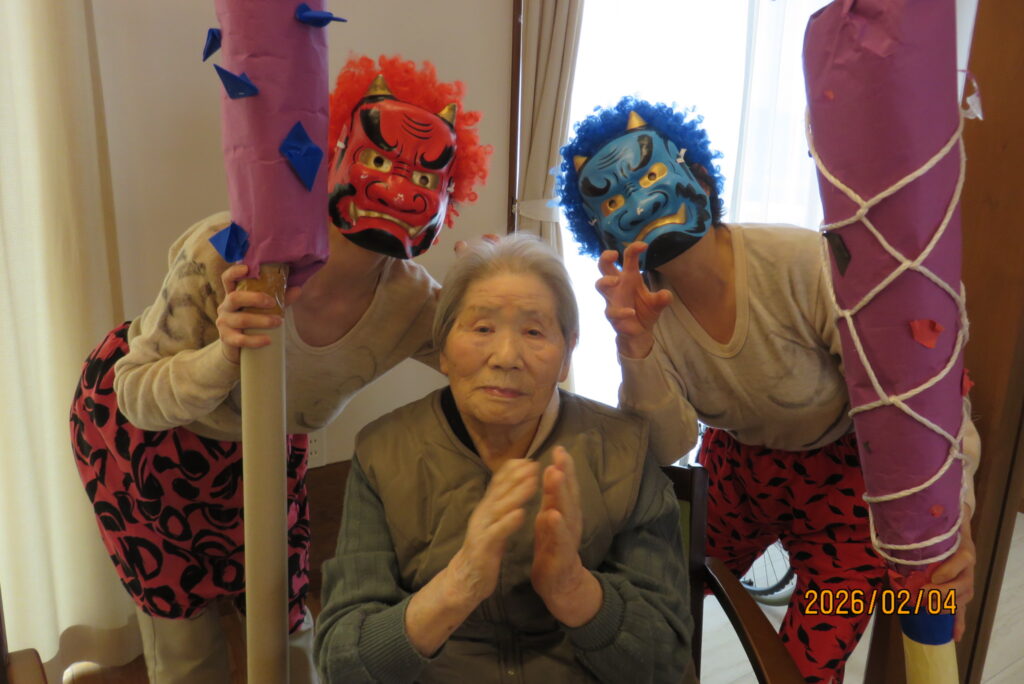 こちらでも鬼たちは降参( ;∀;) 「みんなで仲良く」と記念撮影をしました(#^^#)