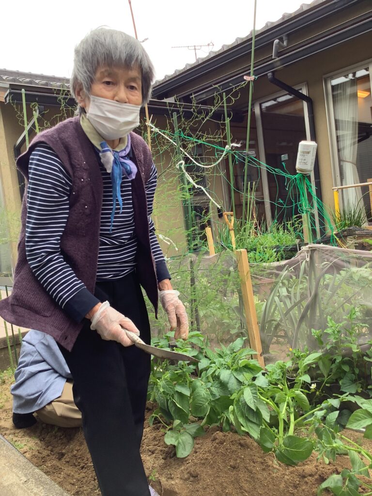 私たちが手を出す間もなく、ご利用者様が慣れた手つきで土寄せしてくださいました♪