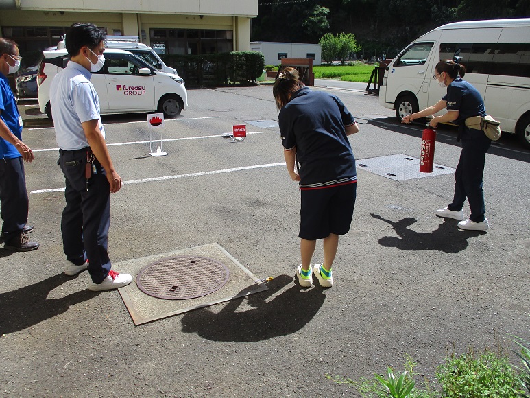 また、この日は、水を充填した器具を使用した消火訓練も行いました。