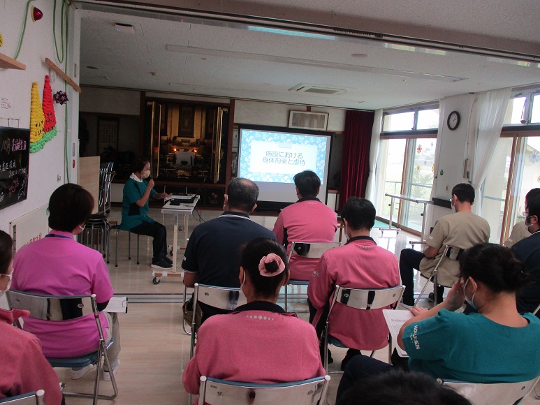 10月21日(火)、全部署の多職種を対象に身体拘束の適正化と虐待防止に関する職場内研修を実施しました。